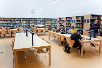 La Biblioteca de Estudios Sociales y de Marketing se encuentra en la planta baja del complejo del mismo nombre. Cuenta con 469 puestos de lectura que incluyen salas de lectura, salas de trabajo en grupo y hemeroteca, distribuidos en tres plantas.